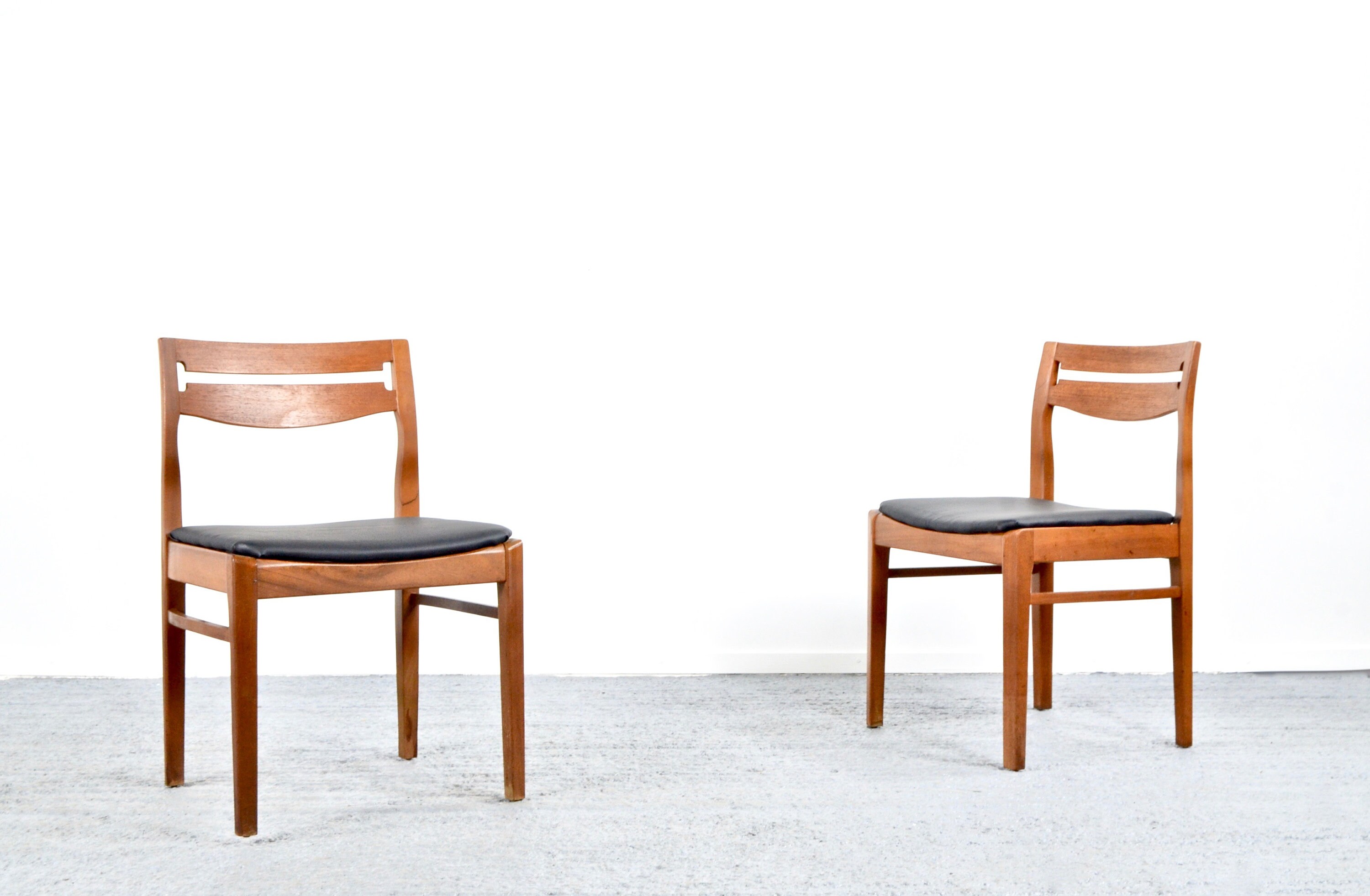 Set Of 2 Midcentury Teak And Leatherette Chairs Vintage Etsy Uk